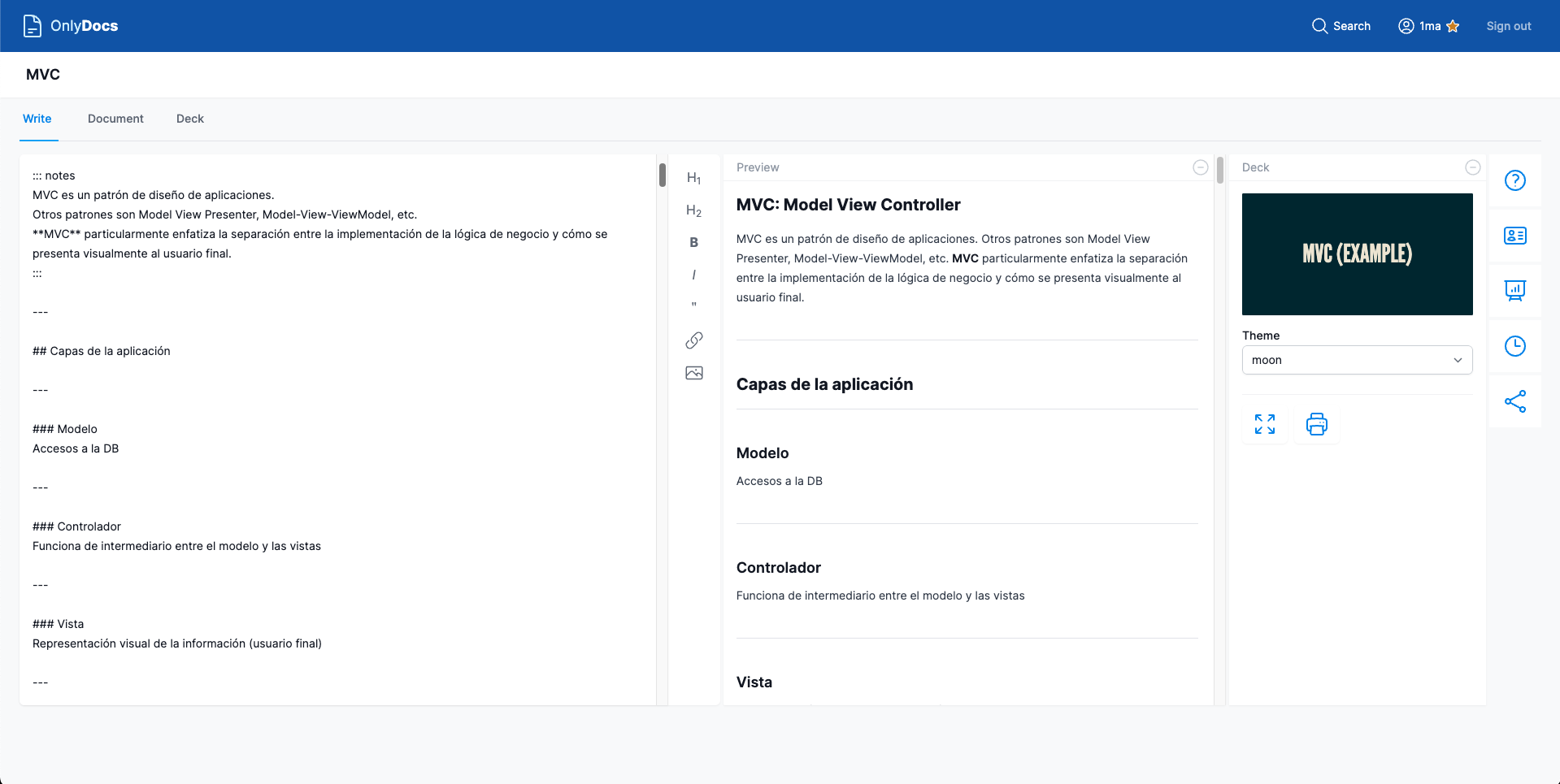 Write your documents in markdown, see your documents in beautiful HTML, with preview as you write.